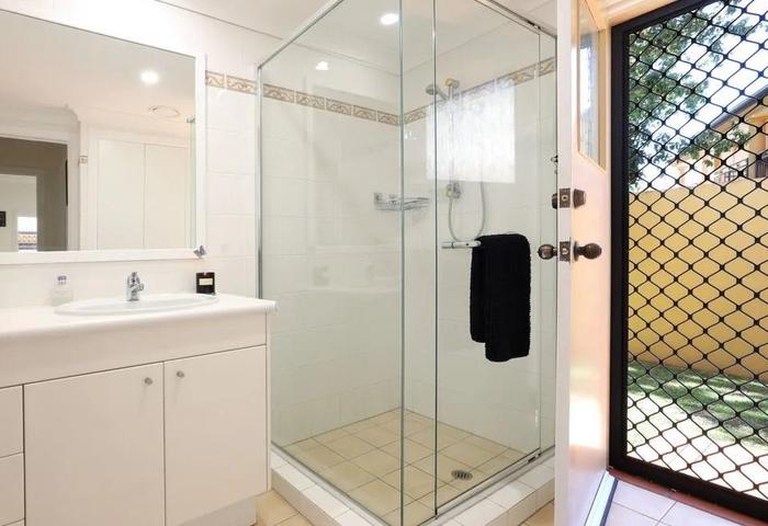 This charming villa features three bedrooms, the large master bedroom with walk in robe and spacious ensuite, with double vanity, shower and spa bath. The second bedroom has built in robes, and the third bedroom with beautiful bifold door, looks out onto the patio and is suitable as an office or separate living/sitting area.