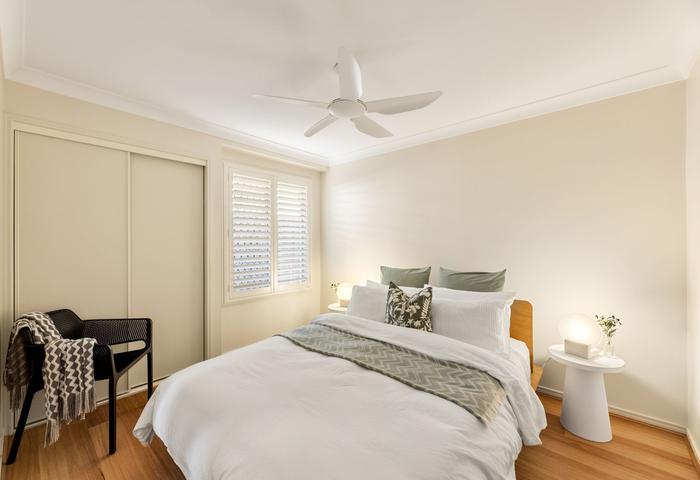 All three bedrooms are generous in size and feature brand-new hybrid timber flooring and plantation shutters for timeless appeal. The master bedroom includes an ensuite and direct access to its own private outdoor area, perfect for a morning coffee in peace. A clever design offers flexibility: the second bedroom connects to a two-way bathroom, creating a second ensuite option or a shared main bathroom—ideal for guests or family.